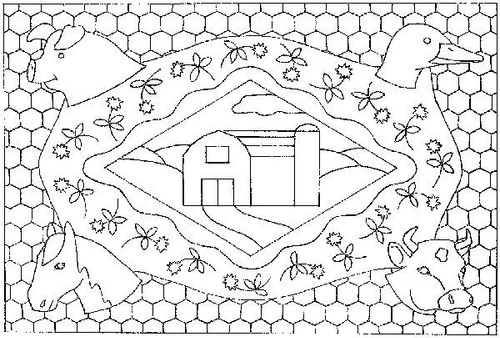 Farm Medley rug hooking pattern on Linen 30″ x 44″ by Melissa Elliot.