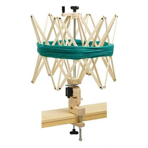 The Ultra Umbrella Swift is ingeniously designed to fit most tables. The Ultra turns freely on ball bearings and can be used vertically or horizontally. The swift expands downward from the top to hold skeins up to 93″ in circumference. Includes an optical yarn counter.