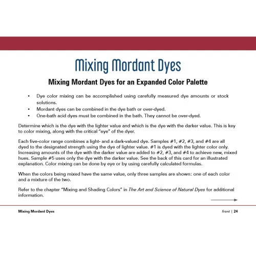 The set includes: The Dyes, Indigo, and Indigo Overdyes, and a complete set of essential formulas for the natural dyer, right at their fingertips. The dyes include two-color mixes and overdyes using madder, cochineal, weld, cutch, pomegranate, rhubarb, and indigo.