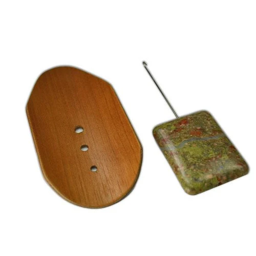 The diz is made of cherry, features a great design for easy holding while you draft your fibers and comes with 3 different size holes for drafting different size top.
